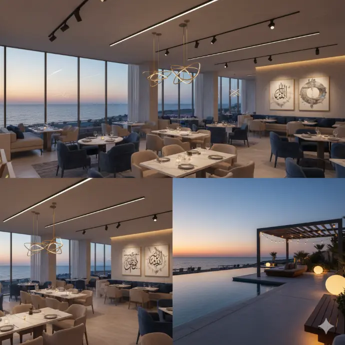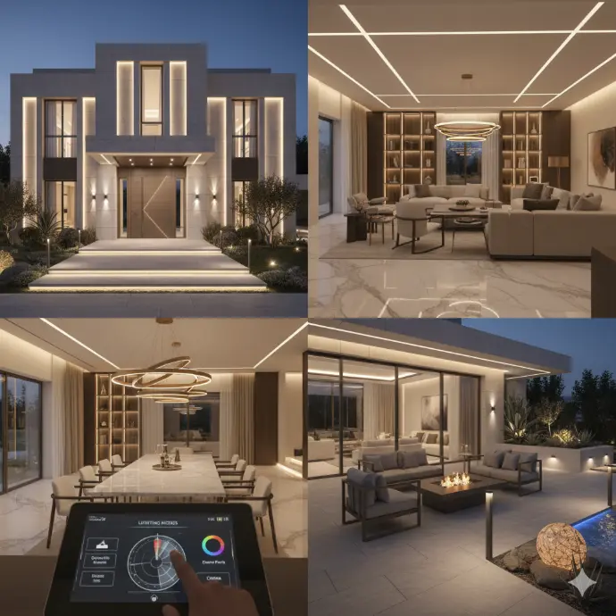 • الإضاءة المخفية: لإبراز التفاصيل المعمارية وخلق شعور بالدفء والغموض.